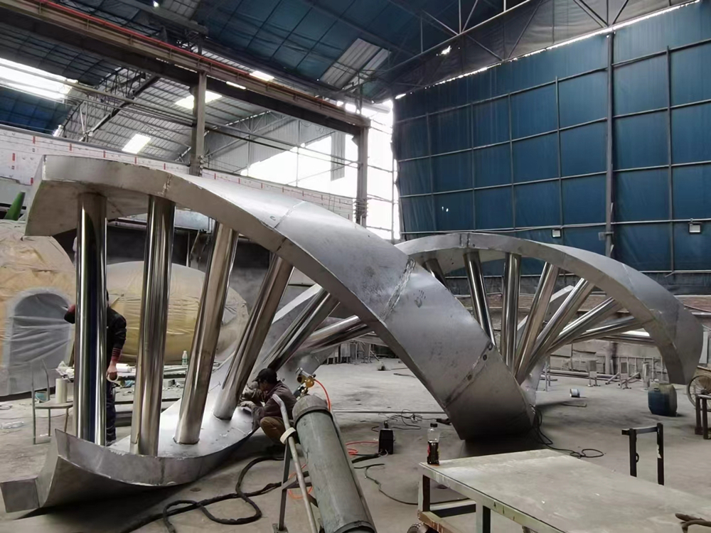 不銹鋼雕塑是常見的城市雕塑。不銹鋼材質具有耐空氣、蒸汽、水等弱腐蝕介質和酸、堿、鹽等化學浸蝕性介質腐蝕的特性,因為不銹鋼雕塑有諸多的優越性,所以很多的城市雕塑以不銹鋼材質為材料。不銹鋼雕塑有多種造型,幾何雕塑,圓雕,抽象等,內容豐富,可塑性強。 不銹鋼雕塑應該有規律的清潔,并且放在干燥的環境里來保護。用手拿時最好帶上手套,防止手上汗水里的鹽腐蝕。